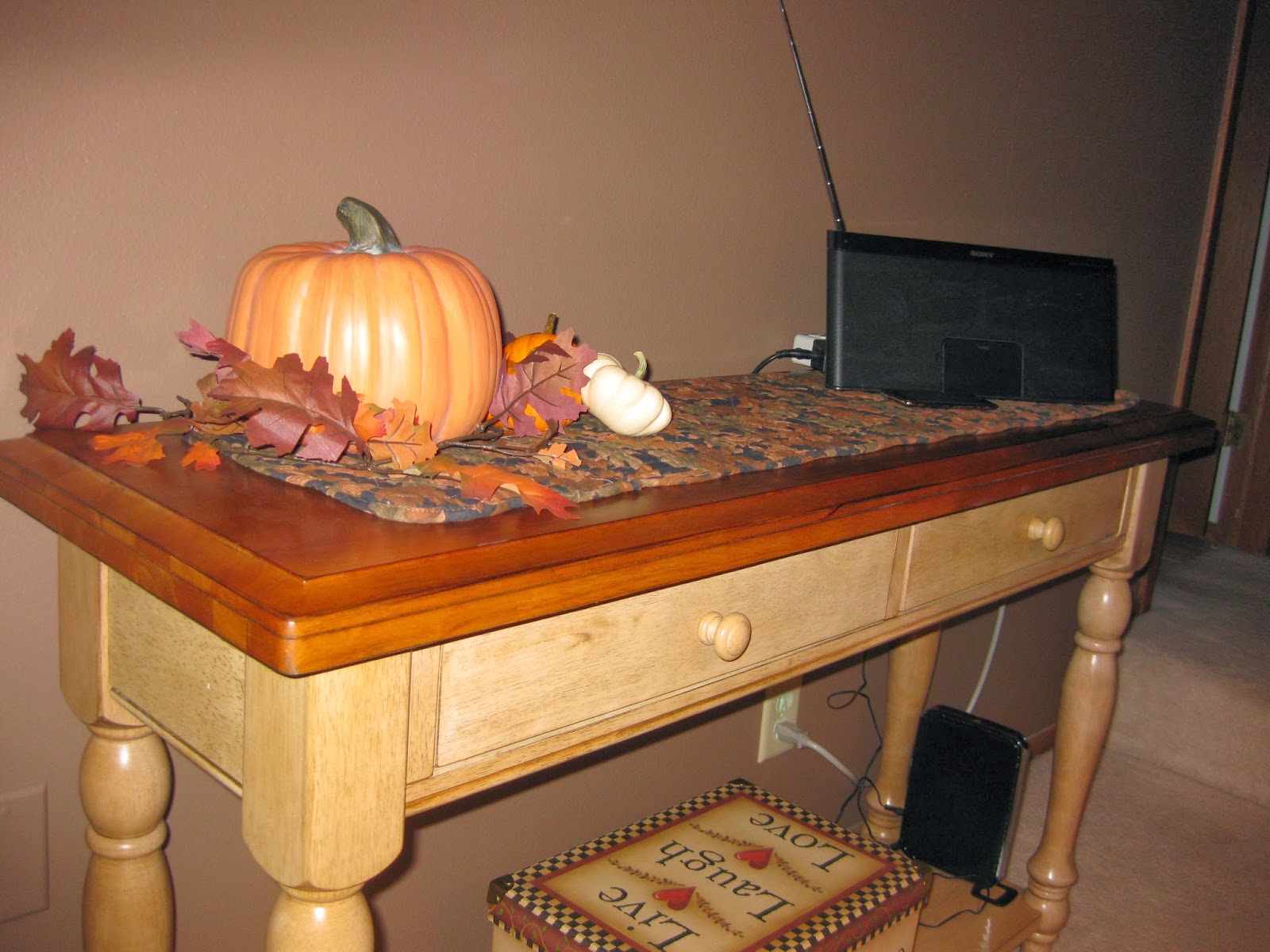 The drawer pulls on the tables are going to be changed out. The plain wood ones are so ... boring. I've pretty red ceramic ones to put on instead, once I locate the right tools.
